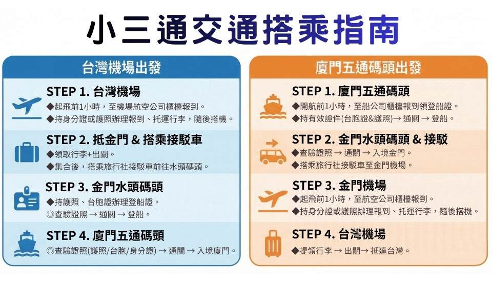 📌轉乘建議:飛機航班與船班之間,建議預留 2 小時以上銜接時間。