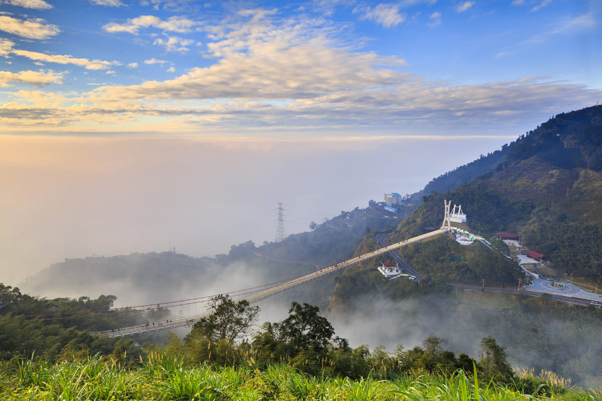 太平雲梯為高山單跨景觀吊橋,橫跨太平山與龜山間,長度281公尺、海拔約1,000公尺,為海拔最高之景觀吊橋,雲梯上可俯瞰嘉義風光觀賞夕陽、晚霞、雲海等自然景觀,知名的梅山36彎美景盡收眼底,由於視野極佳,更可遠眺嘉南平原直至台灣海峽,入夜後還有精彩燈光秀,以彩虹顏色紅、橙、黃、綠、藍、靛、紫為光雕表演,雲梯照明燈光展演依照一週7天排序,週一為紅色、週二為橙色,每天一色,從晚間6點到10時,整點會以彩虹色彩慢速變化,越夜越美麗。