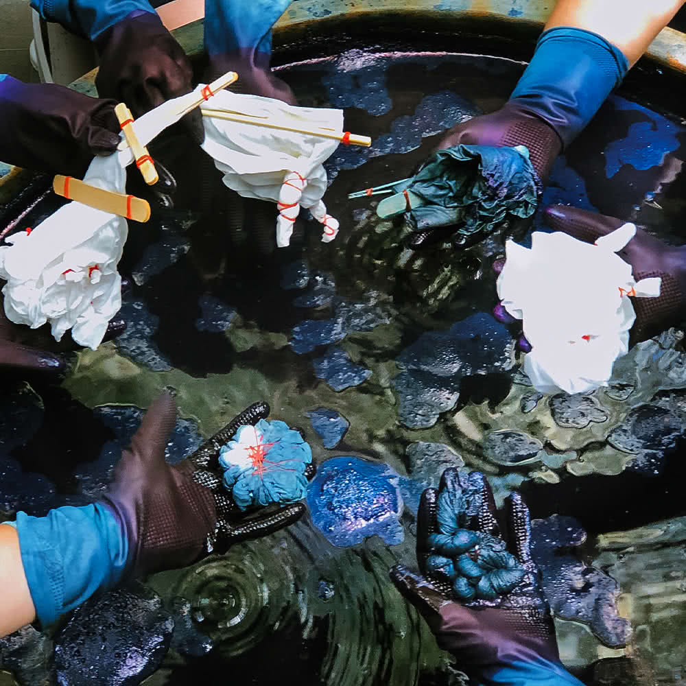 由於苗栗縣三義鄉高濕度中海拔氣候的關係,非常適合種植藍草-大菁(山籃或稱馬籃),這類的藍草也是藍染重要原料。今天我們就來目睹染匠從綠色的「藍草」中染出更為出色的青豔色彩,感受真正的「青取之於藍,而青於藍」,我們也將在這裡體驗藍染DIY,做出屬於自己的藍染作品。