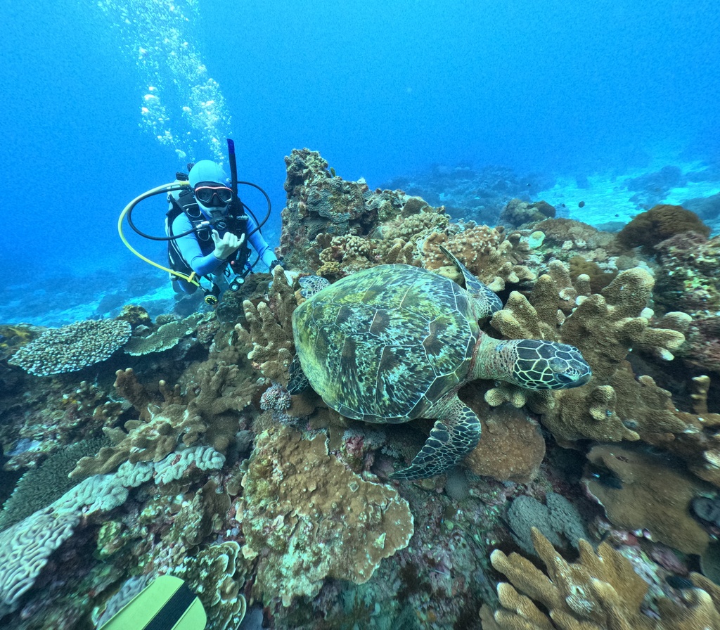 看著陽光穿透水面,灑在繽紛的珊瑚礁上,無數熱帶魚在身邊穿梭,像是闖入了一場藍色的夢