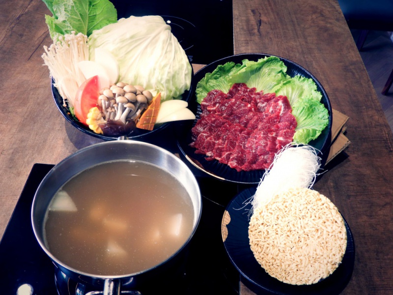 金門牛隻以高粱酒糟和青草飼養,肉質比一般草飼牛更甜、腥味低、油花自然,口感軟嫩。牛肉片在滾燙的高湯中涮約3-5秒至變色即可食用,保持粉嫩口感。