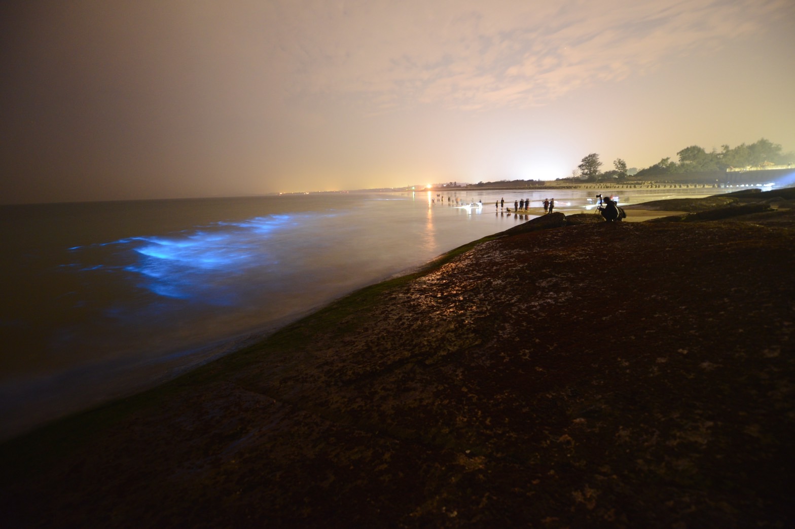 金門藍眼淚是每年春夏交替之際,受惠於南風吹拂與合適的海水溫度而產生的自然奇觀,主要由「夜光藻」在海浪拍打受刺激後發出藍光所致。