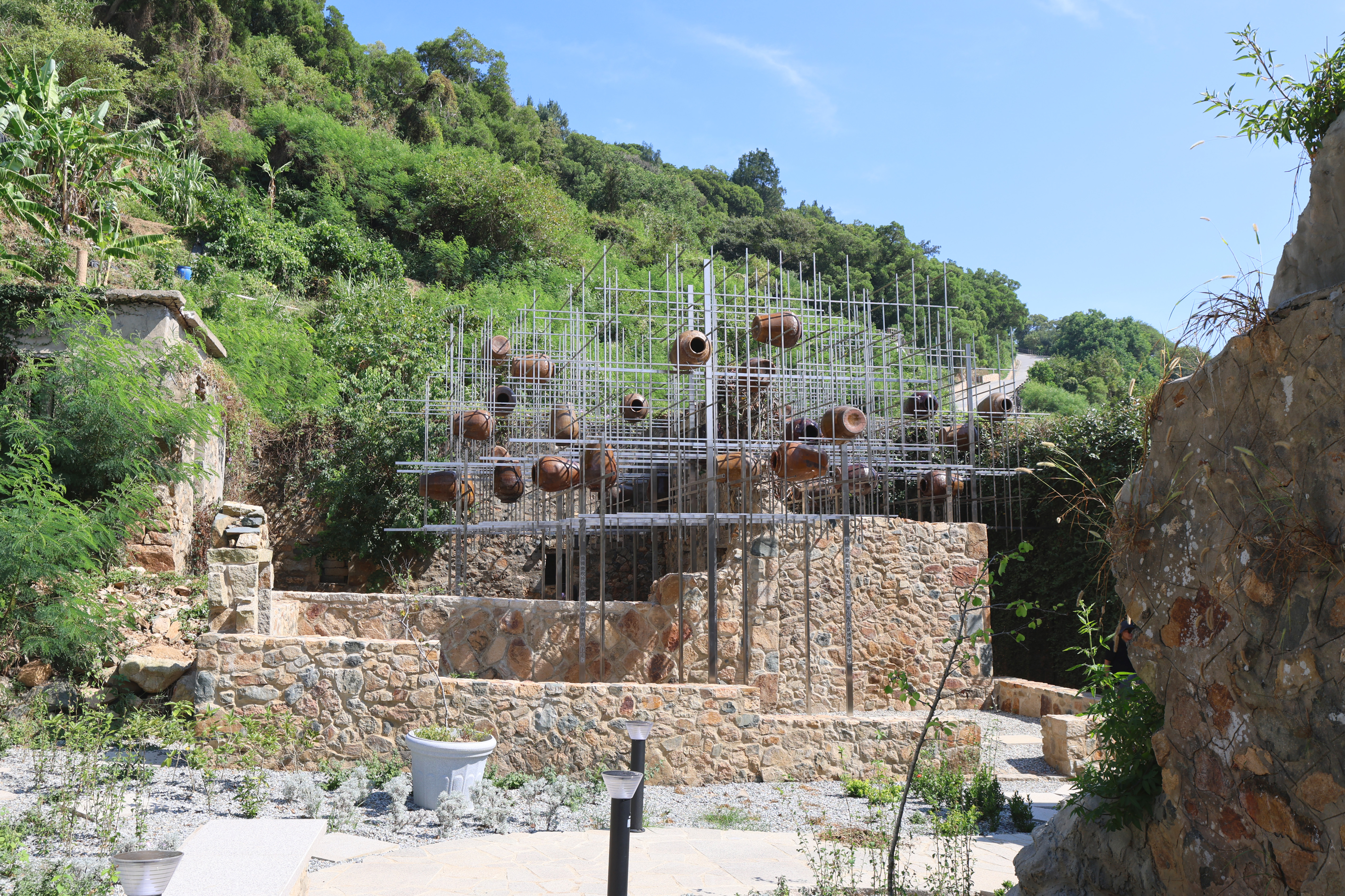 作品由數十個傳統釀酒甕懸掛在鋼構間,這個設計象徵了馬祖豪邁與好客的精神。