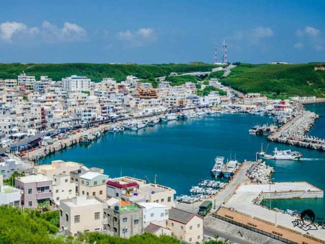 # 外垵景觀台:西嶼的外垵漁港被網友評為澎湖最美的漁港,整座外垵漁港依山勢而建,從制高點三仙塔往下拍非常漂亮,台版聖托里尼、台灣小希臘...