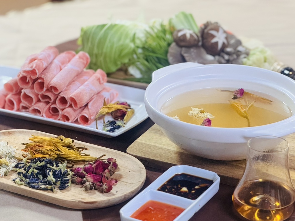 食材:金針花、玫瑰、蝶豆花、菊花、紅露酒