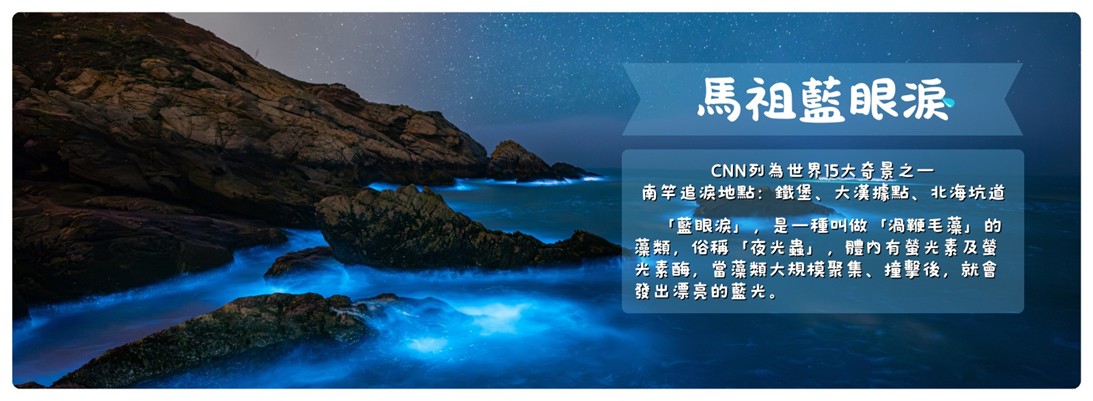 • 東莒夜間由領團人員帶領前往東莒燈塔觀星、追尋藍眼淚或 踩星沙。