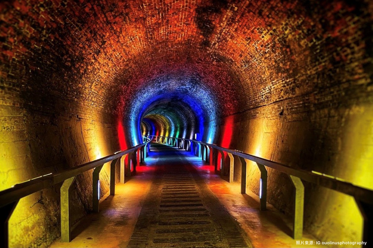 苗栗海線秘境「後龍過港隧道」,後龍過港隧道群其實就是白沙屯隧道群,屬於舊海線鐵路,從1920年完工通車後,已有百年歷史,這幾年才將廢棄的舊隧道整理成自行車道,並打上燈光。連續三個隧道構成夢幻的七彩鐵路,絢麗的燈光打在紅磚砌成的舊隧道,彷彿漫步在浪漫的星光大道喔~