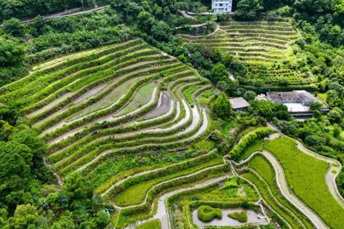 🌾 漫步嵩山百年梯田步道,層層梯田與鳶尾花交織成夢幻畫面,山、海、花一次擁有,彷彿走進一場溫柔的春日電影。