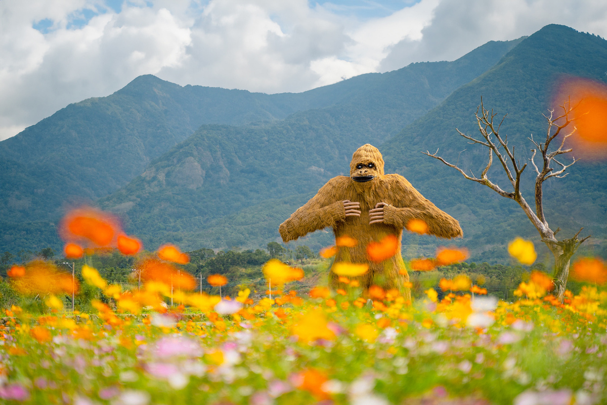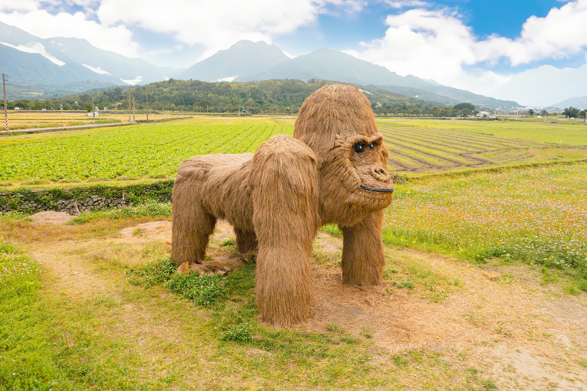 沿著台9線花東縱谷公路開,靠近富里鄉農會可以看到路邊有個景點「富里花海景觀區」,這裡是連續舉辦五屆富里稻草藝術季的場地,學生與在地居民們利用稻草編織成藝術品,成為花蓮富里旅遊的景點,可以看到許多用稻草及竹子製作的大猩猩、金剛、老鷹、等裝置藝術。