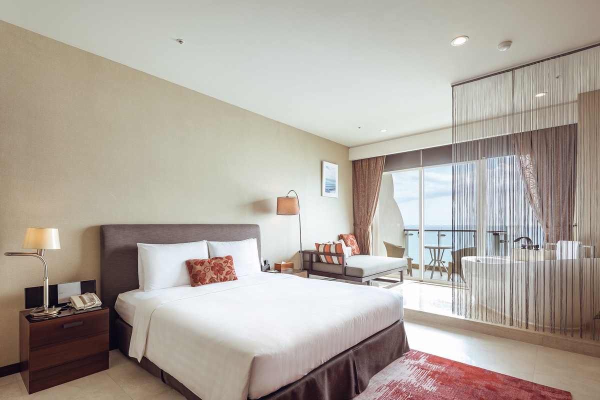 得天獨厚的地理優勢,每間客房均有面海觀景落地窗,簡潔的室內優雅設計,處處可見貼心巧思。