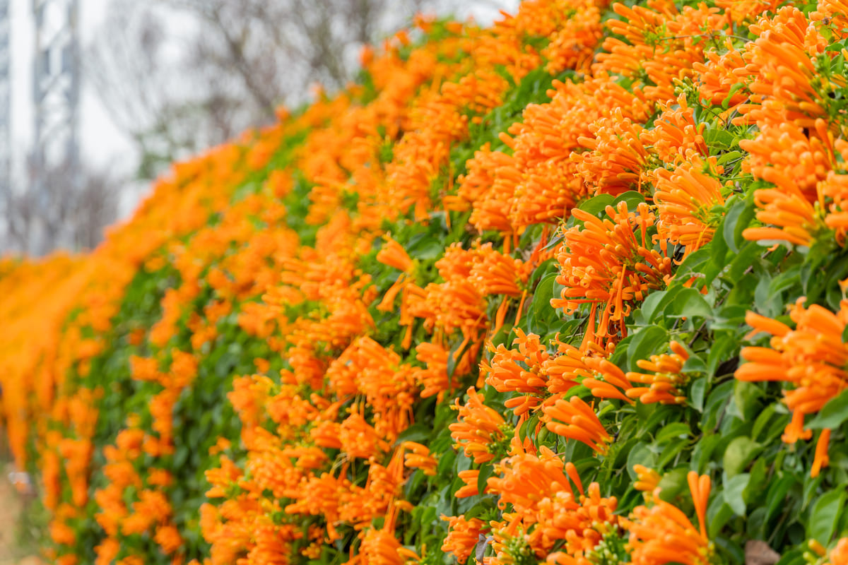 銅鑼鄉公所推動環境美綠化工作,自九十二年起在鄉內各村中心至偏遠角落,大量栽培炮仗花母株,打造炮仗花城,尤其巧思的是利用水泥駁崁作藤架、任炮仗花隨意攀爬,十二月至二月花開時節,橙黃色的花兒。一串一串的,像極了春節時燃放的炮竹,盛開時花多葉少,金碧輝煌、亮麗耀眼,尤其花期集中於春節前後,倍增佳節熱鬧氣氛。