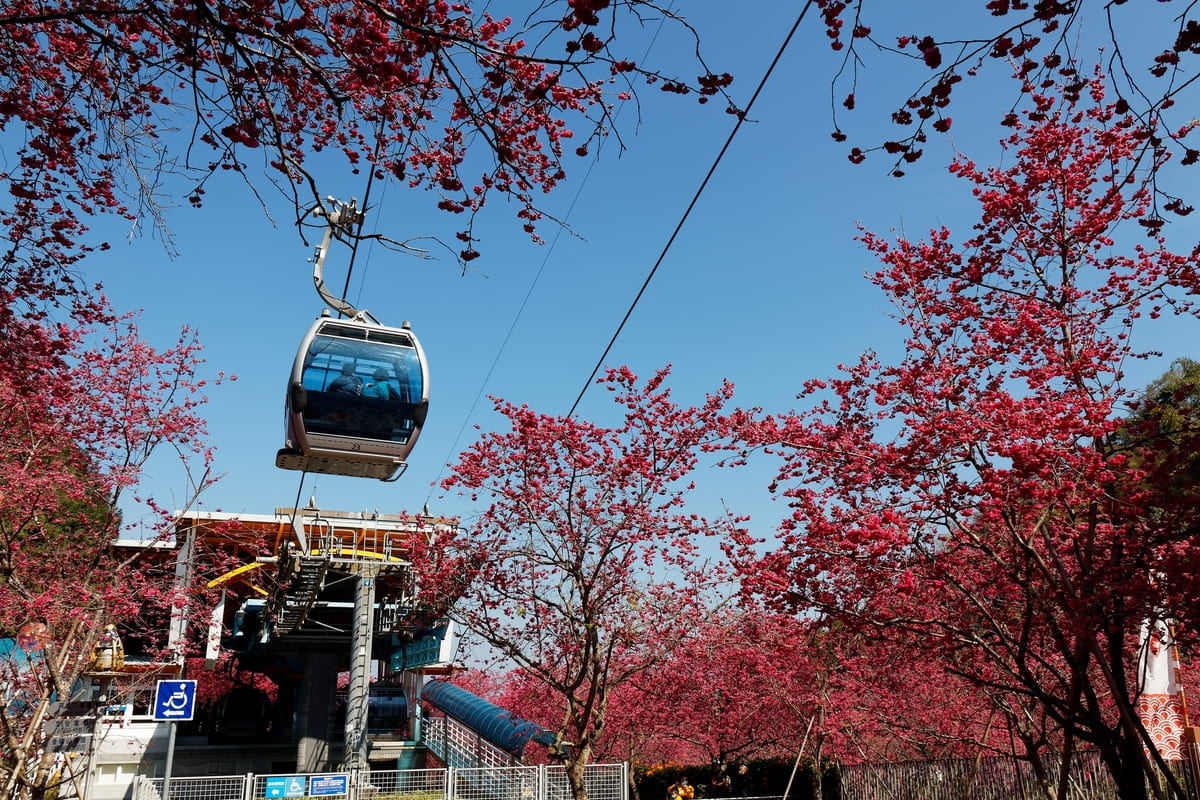 第 1 天台北車站→九族文化村櫻花祭(贈送日月潭纜車)→五星金典酒店→可自行前往綠園道商圈