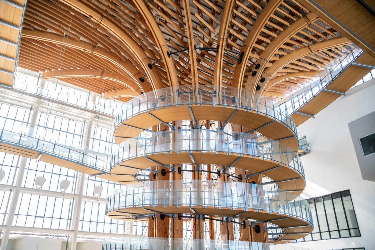 由知名建築大師Brad Williamson親自操刀設計,用奧地利雲杉實木打造10層樓高精神象徵「生命樹」,原木和玻璃完美結合,怎麼看都美。