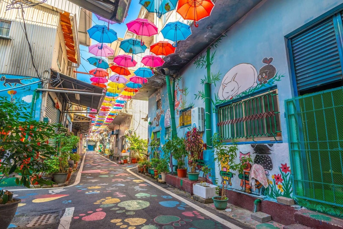 甲仙郵局旁的貓巷彩繪村,由6色共366支陽傘撐起繽紛的天空,貓巷長約100公尺,是社區居民、在地商家、學校師生與公部門所共同創作,各種姿態的彩繪貓咪在巷弄內玩耍,也融入了甲仙在地特色,如採芋貓、考古貓、啦啦貓等等,充滿童趣與創意。寫張明信片,將甲仙的美好交由最受歡迎的橘貓郵筒寄出吧!