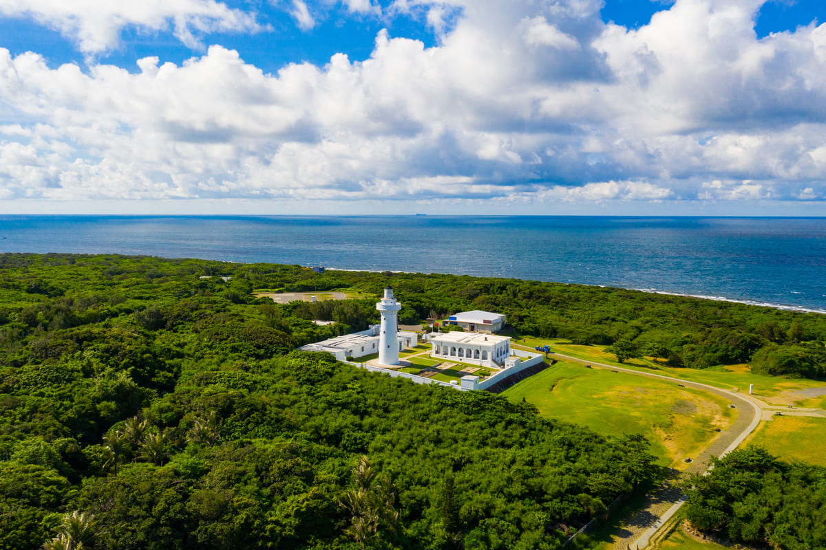 鵝鑾鼻燈塔位於屏東縣鵝鑾鼻岬角,塔身為白色鐵造圓塔,是臺灣本島最南的燈塔。燈樓面向西南方,背山臨海,並構築成砲壘形式,圍牆有射擊的槍眼,四周並築壕溝,使得鵝鑾鼻燈塔成為全國獨一無二的武裝燈塔還享有「東亞之光」的美譽。目前成為墾丁國家公園觀光勝地之一環,波濤帆影,天水一色,自然景色,令人心曠神怡,早經列為臺灣八景之一。