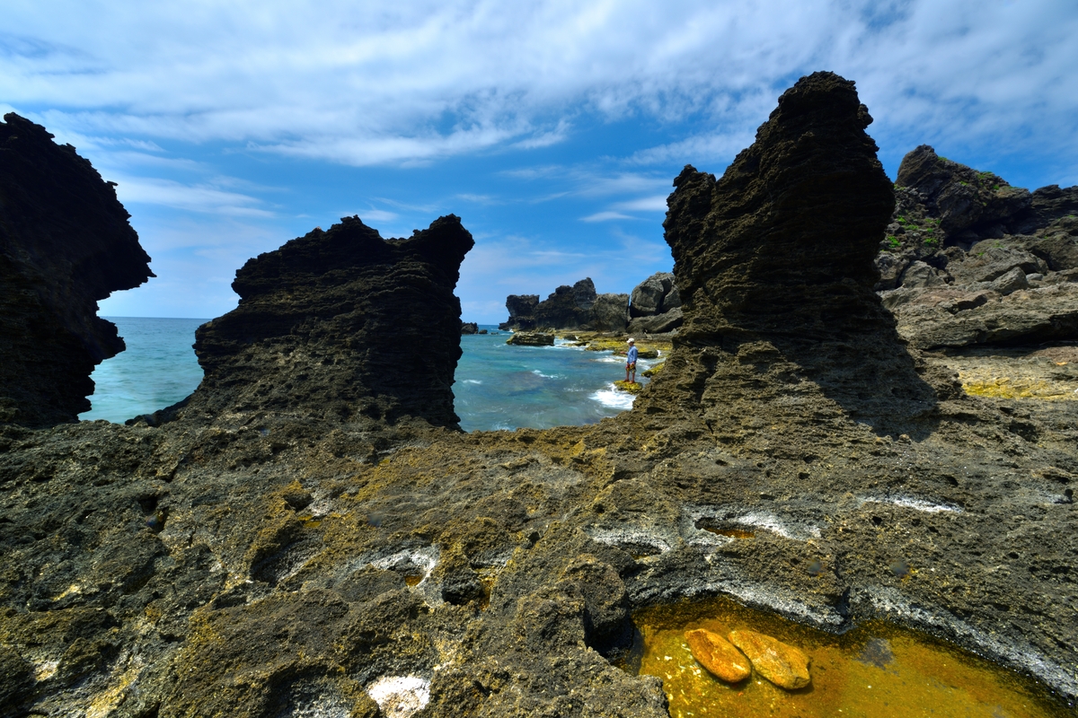 龍磐公園是觀看海天一色的好景點。此處視野廣闊沒有任何屏障,也是觀賞日出、晚霞及觀星的極佳地點。春夏季節綠草碧連天,秋冬時受強勁落山風吹襲,草色即由綠轉淡黃到枯黃,彷彿人們換季換穿制服般、頗有特色。本區在地質上屬於隆起的珊瑚礁石灰岩台地。由於石灰岩被雨水溶蝕,而形成崩崖、滲穴、列溝等地質景觀。遊客觀看此區時,請格外留心步伐、維護自身安全。