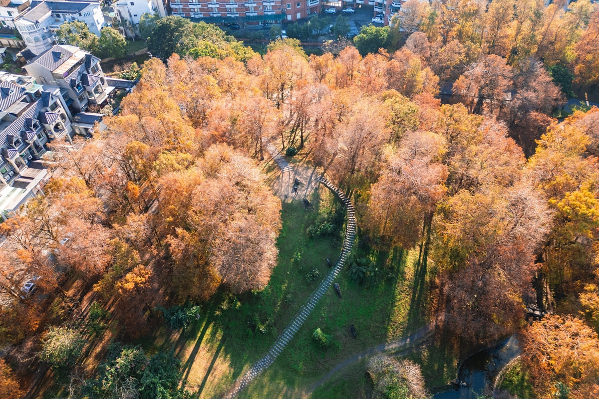 以成片落羽松林為主要特色,季節轉換時呈現不同色調,秋冬轉為橙紅、春夏展現清新綠意。林木整齊排列,水面倒映其間,整體環境展現靜謐而富層次的自然景觀。步道環繞林區,可近距離感受森林與水域交織的風貌。